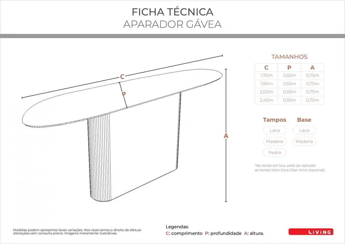 Para maiores detalhes, acesse nosso Espaço de Acabamentos; Demais possibilidades, disponível em nossas lojas físicas.
