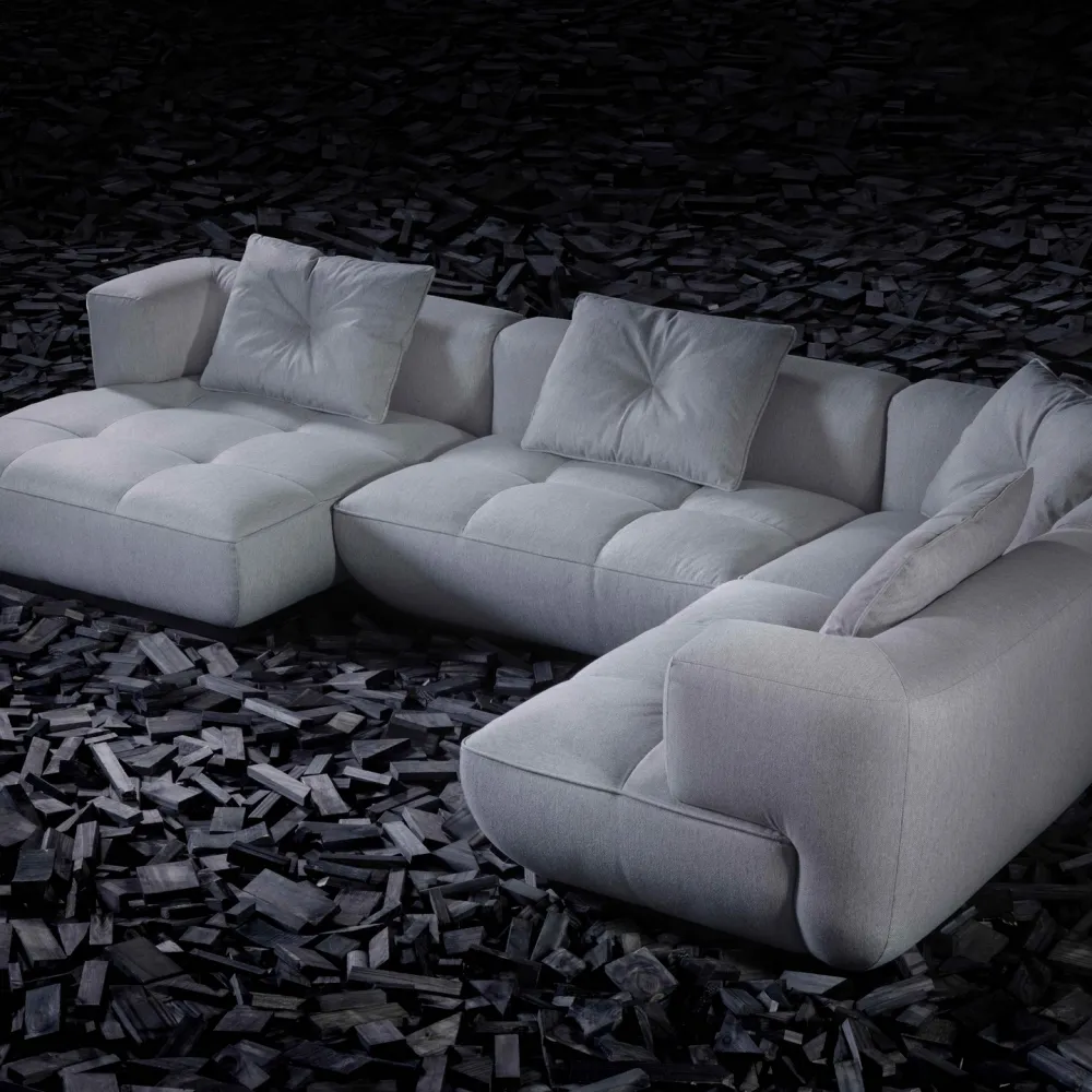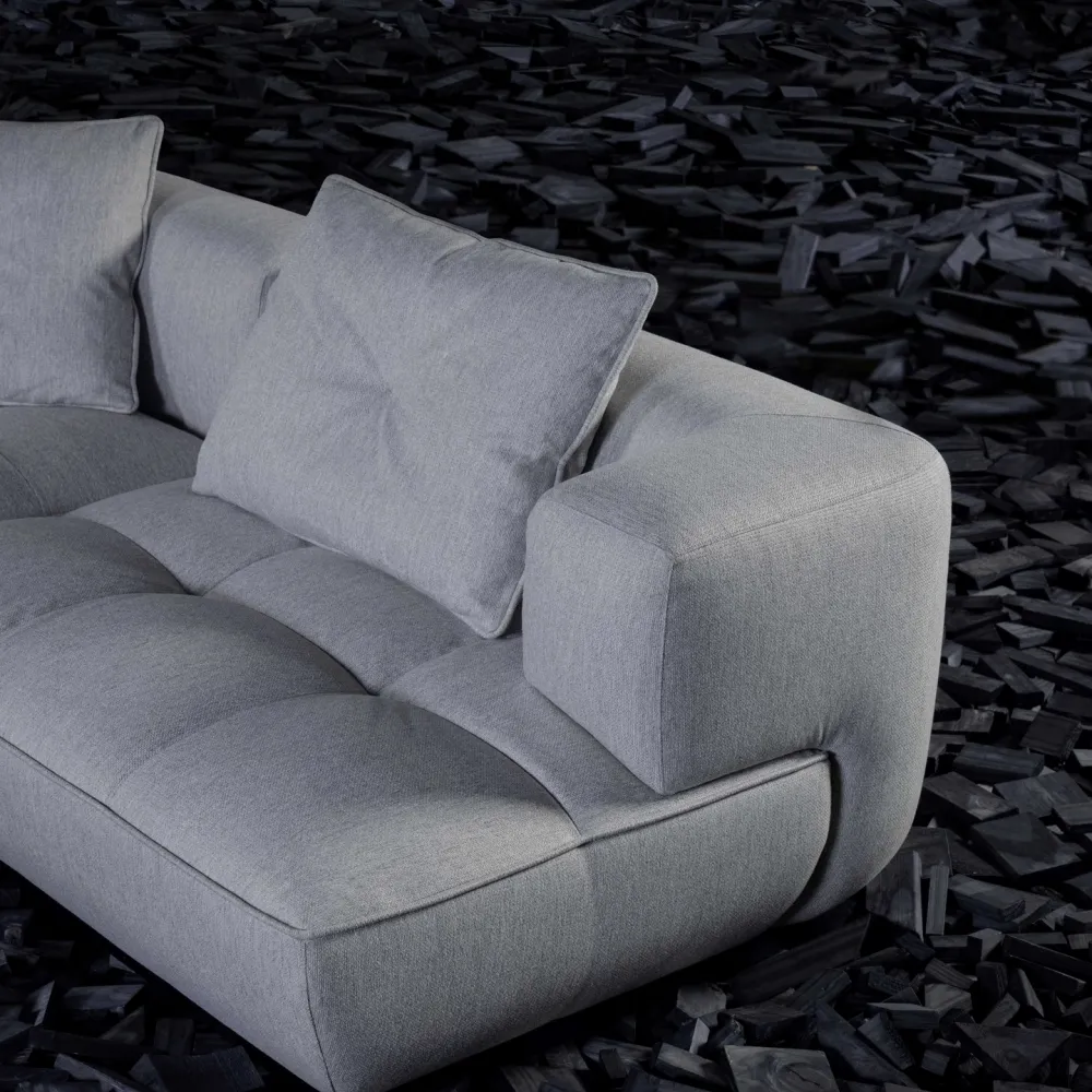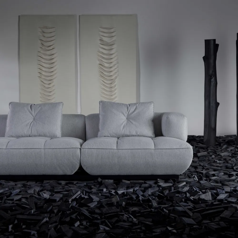Uma releitura contemporânea e minimalista dos sofás capitonê, resgatando a elegância atemporal do design clássico. A técnica tradicional é sutilmente reinterpretada, destacando a sofisticação das curvas generosas e a volumetria macia.